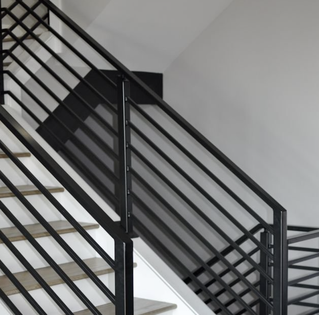 Custom interior metal railings designed for staircases, lofts, and open living spaces. Clean, modern lines, precise fabrication, and durable powder-coated finishes. Built in-house to meet safety standards while integrating seamlessly with contemporary interior architecture.